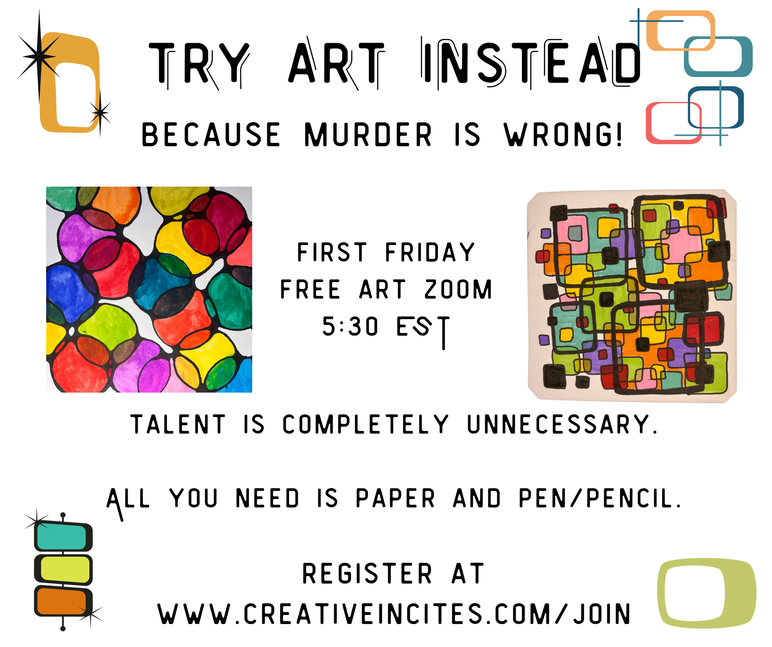 If ever there was a time for creativity and community, it’s now. That’s why I hope to see you at our First Friday Art Instead Happy Hour. It’s a happier hour with no noisy bar, no bar tab, and no regrets. 5:30 EST on zoom. Sign up to get the link! Please note there will be no Art Instead zoom in September, as I will be out of the country.